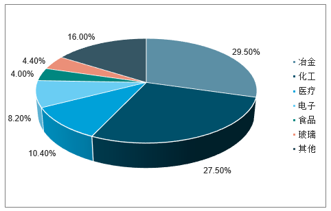 工业气体是一种瓶装压缩液态气体,在常温常压下呈气态,是工业的“血液”。随着中国经济的快速发展,其作为国民经济基础工业要素之一,在国民经济中的重要地位和作用日益凸显,被广泛应用于多个国民经济重要领域,包括冶金、化工、医疗、电子等多个行业。其中,冶金和化工对工业气体的需求最高,分别占比29.5%和27.5%。