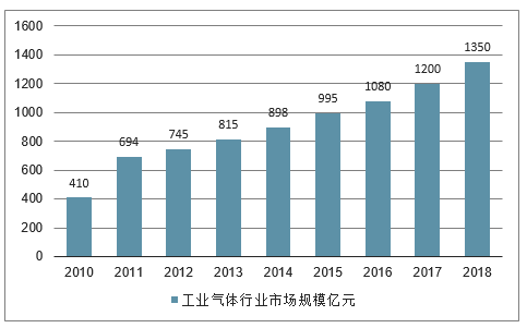 随着我国经济的持续稳定发展,我国工业气体市场需求还会进一步增长,预测2018年我国工业气体行业市场规模将进一步增长至1300亿元以上。