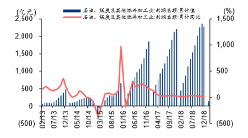 石油、煤炭及其他燃料加工业月度累计利润总额及增速